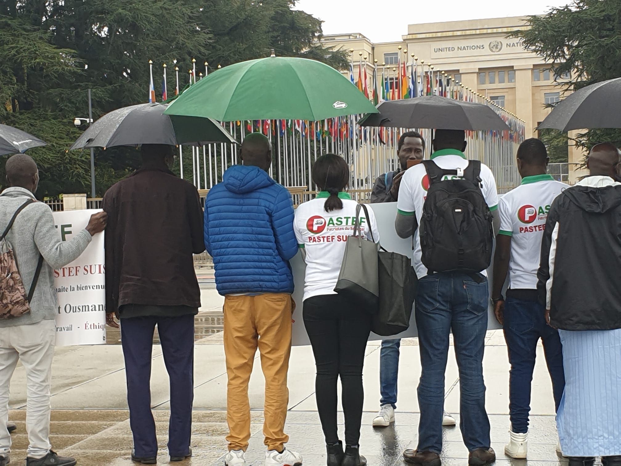 Manifestation de Pastef Suisse devant le siège des Nations Unies à Genève.